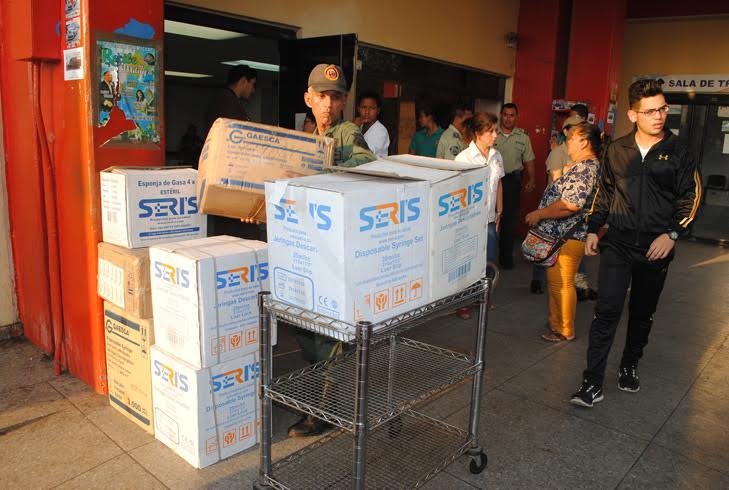 Entre los insumos donados se encuentran sábanas, guantes, inyectadoras, batas, kits de laparotomía, recolectores de orina, tapa bocas, respirómetro, gasas, baja lenguas y centro de cama.