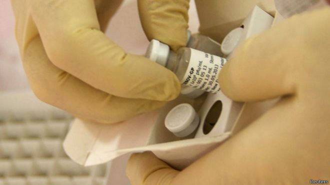Un estudio clínico de una vacuna contra el ébola que se lleva a cabo en el Hospital de la Universidad de Ginebra, Suiza, fue suspendido luego de que cuatro voluntarios se quejaran de dolores en las articulaciones de las manos y los pies.