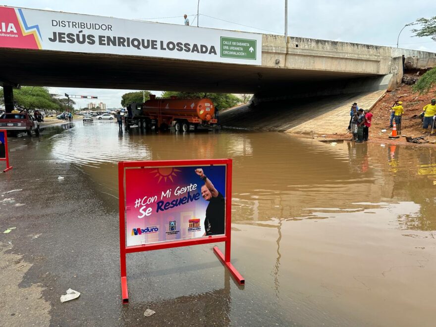 Para atender la eventualidad el Alcalde Giancarlo Di Martino habilitó camiones tipo Vacuum para remover el agua estancada en la vía del distribuidor Jesús Enrique Lossada, posteriormente maquinaria pesada fue retiró desechos sólidos acumulados en las tanquillas de aguas servidas y cuadrillas de limpieza sanearon el espacio por donde transitan miles de marabinos diariamente.