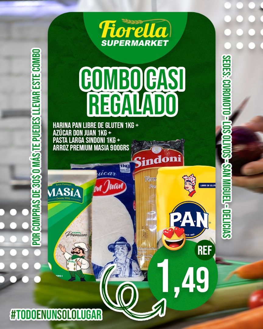 Maracaibo, 24 de julio de 2025 – Fiorella Supermarket se complace en anunciar el esperado popular Combo «Casi Regalao» en sus sucursales de Los Olivos, Delicias/, San Miguel y Coromoto este sábado 26 de Julio 2025. Esta iniciativa, que busca ofrecer productos esenciales a precios inigualables, forma parte de una serie de acciones destinadas a apoyar la economía de las familias marabinas.