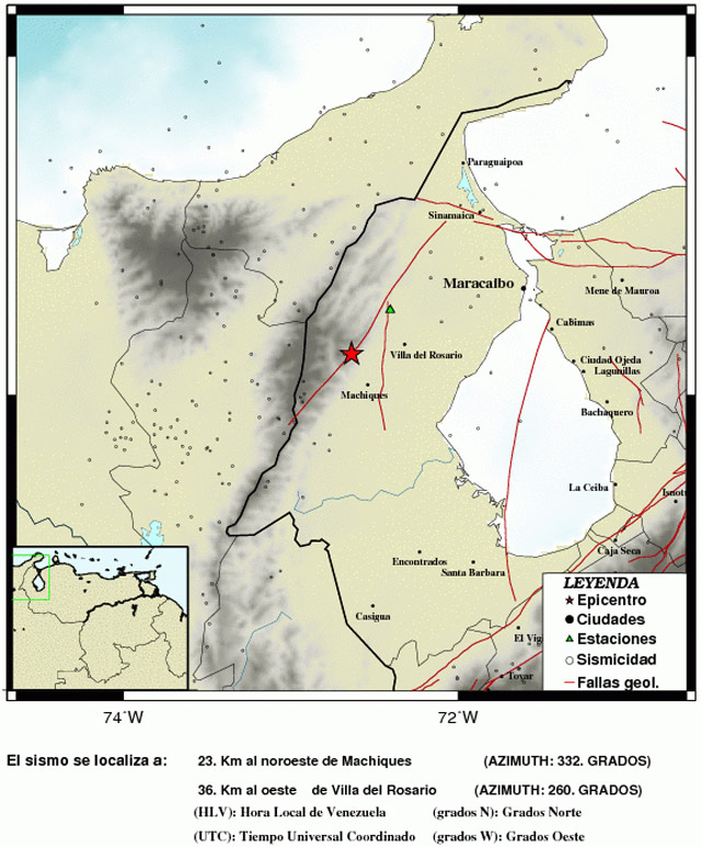 Un sismo de 3.0 de magnitud se registró este sábado a las 10:35 de la noche a 23 kilómetros al noroeste de Machiques, estado Zulia, de acuerdo con un reporte de la Fundación Venezolana de Investigaciones Sismológicas (Funvisis).