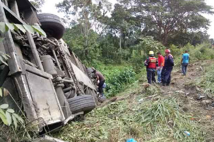 Por su parte en horas de la noche del domingo se registró el tercer vuelco de autobus durante el fin de semana, en el sector el Baho del estado Mérida, un expreso se accidentó dejando tres víctimas mortales y 20 heridos en su mayoría niños, que fueron trasladados al Hospital Santo Domingo.