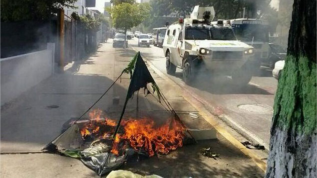 Vecinos de la zona aseguran que esos actos vandálicos fueron responsabilidad de la GNB, que desplomó los equipos de control vial con las tanquetas.