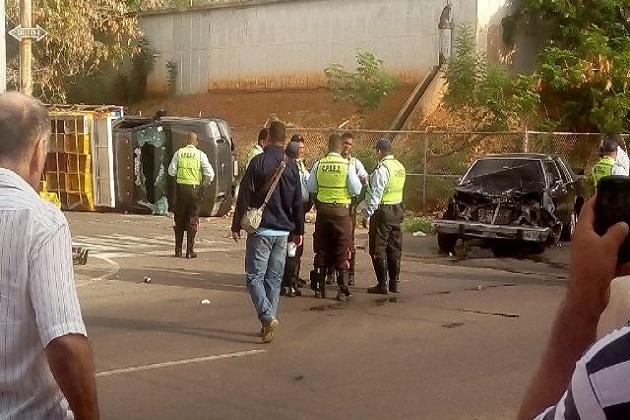 Los robacarros, bajaron de la unidad tras el choque y se enfrentaron a tiros, siendo abatidos.El camión 350 quedó volcado en el pavimento; mientras que el carro quedó destrozado por la parte delantera.