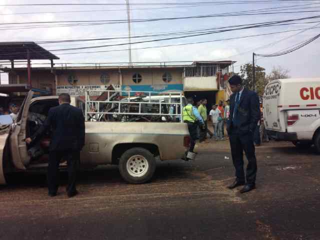 El cuerpo se encentra dentro de la camioneta Chevrolet, zona acordonada policialmente.