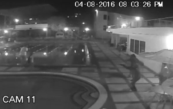 Al irrumpir al lugar, los asaltantes se dirigieron al patio, amenazaron incluso a un padre que caminaba con su pequeña hija por el borde de la piscina. El hecho se registró, según la hora marcada por el video, poco antes de las 5:00 de la tarde.
