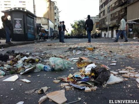 Todas las calles de este sector están llenas de piedras y basura y reina mucha confusión entre los transeúntes. Todos los comercios de la zona bajaron sus santamarías.