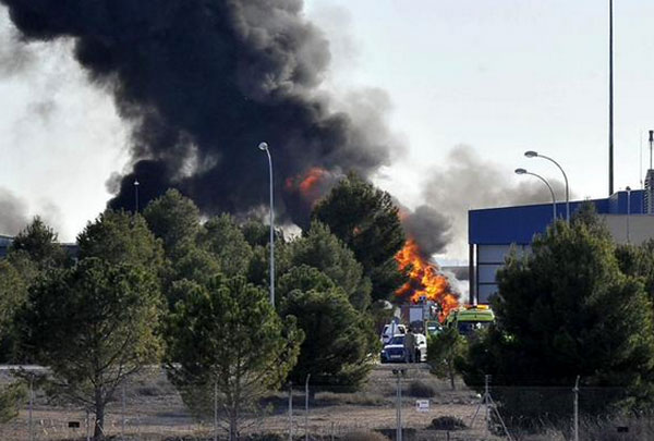 Las primeras imágenes mostraron una densa columna de humo negro sobre la base, situada cuatro kilómetros al sur de Albacete y que fue acordonaba mientras se sofocaba el incendio generado por el accidente.