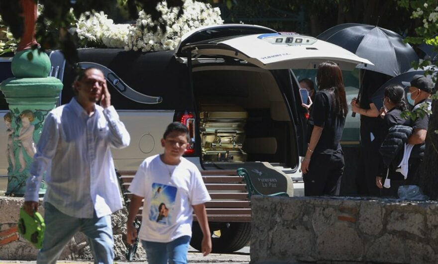 Alrededor del mediodía, un féretro bañado en oro arribó al cementerio Recinto de La Paz a bordo de una carroza fuertemente custodiada. El trayecto desde la funeraria estuvo marcado por la presencia de grúas que transportaban monumentales arreglos florales, entre los que destacaban figuras de rosas rojas en forma de gallo —en alusión a su apodo, “El Señor de los Gallos”— y coronas con las siglas de la organización criminal.