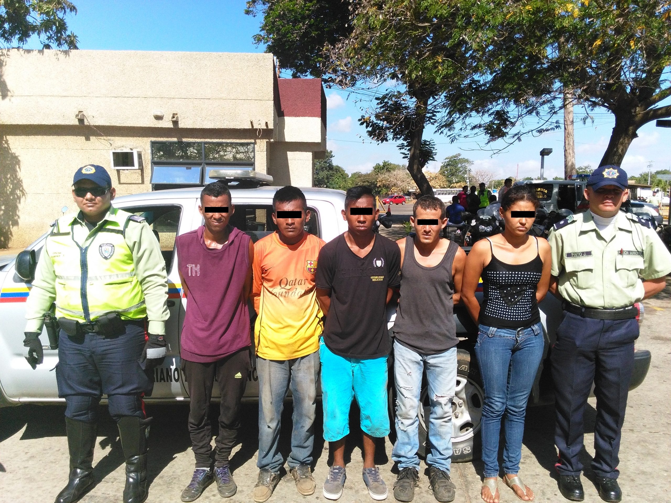 Los sujetos fueron identificados como: Suyin Rodríguez, de 25 años, Junior Palmar, de 21 años, Osnaider Hernández, de 19 años, Norwin Estrada, de 20 años y Yoger Ocanto, de 28 años, a este último se le fue incautado un facsímil de un arma de fuego tipo pistola.