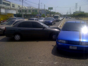 Un Mitsubishi Signo gris, placas VDD-62G, impactó contra un Ford Fiesta azul, matrícula SAE-11E en la avenida Guajira con la calle 66, a pocos metros de la Facultad de Ingeniería de LUZ, diagonal a la torre del rectorado.