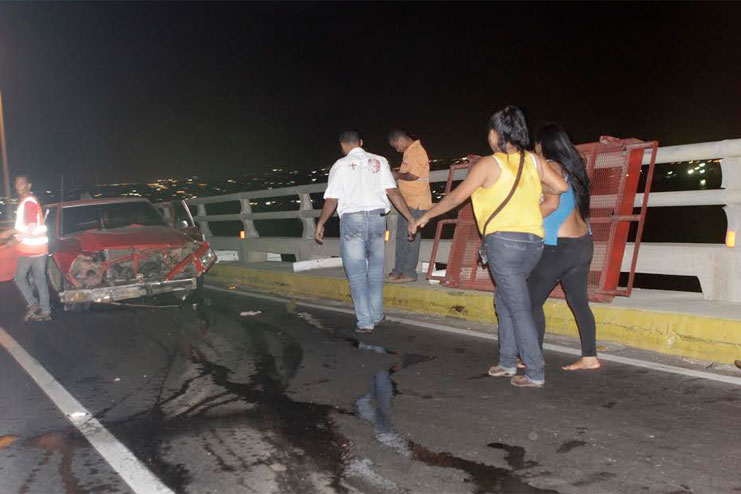 A las 11.50 minutos de la noche de este viernes se registró un aparatoso accidente en el Puente sobre el Lago de Maracaibo, sentido COL-Maracaibo, cuando un carro particular modelo Zephir se estrelló por detrás de un camión encargado de hacer mantenimientos al coloso de concreto.