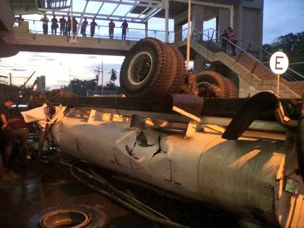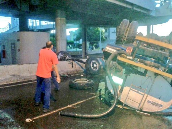 La mañana de este martes un camión cisterna se volcó e impactó contra la cerca perimetral del Metro de Maracaibo, a la altura de El Varillal.