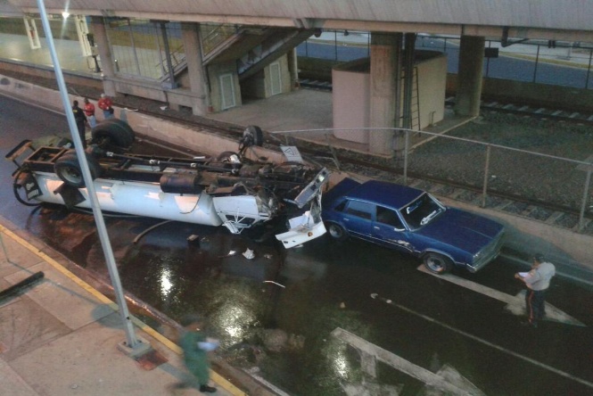 Previo al hecho, en el sitio se había registrado triple choque entre un Malibú color azul, que colisionó contra otro Malibú color blanco y una camioneta de Pdvsa. Al ver el accidente, el conductor del camión cisterna intentó desviar los vehículos e impactó contra el cercado.