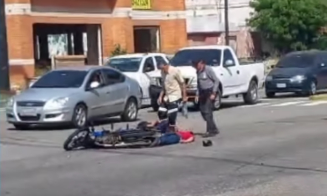 El conductor intentó cruzar la vía y terminó impactando a los motorizados, quienes cayeron al pavimento con lesiones visibles.