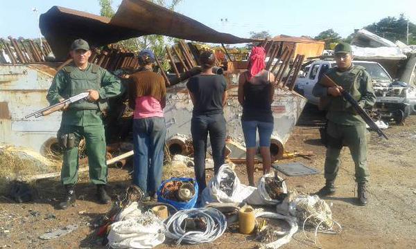 Detalló, que a las féminas se les incautó la cantidad de 115 kilogramos de alambre de cobre de diferentes tipos, quedando identificadas como: Yusmaira Coromoto Zarraga de 38 años, Yohana del Carmen Rondon de 25 y Yanet Carolina Rondon Zarraga de 35 años de edad.
