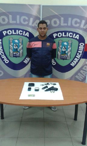 Fue aprehendido por la acción oportuna de los funcionarios de Polimaracaibo que atendieron la llamada de emergencia en el cuadrante de la calle 76 con avenida 9B, en el momento de la detención tenía en su poder un arma de fuego requerida por el Cicpc, será puesto a la orden del Ministerio Público.