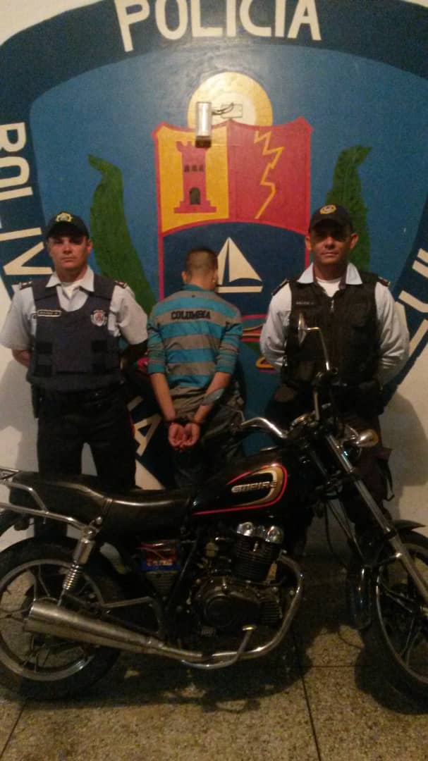 En horas de la noche de este jueves, oficiales del Cuerpo de Policía Bolivariana del estado Zulia (Cpbez) de servicio en el cuadrante de Paz 04, adscritos al Centro de Coordinación Policial Sur del Lago Oeste, en su servicio de vigilancia y patrullaje vehicular, detuvieron a un individuo denunciado por robo de una moto a fuerza de golpes y amenazas de muerte, en plena avenida Bolívar, de la parroquia Santa Bárbara, municipio Colón.