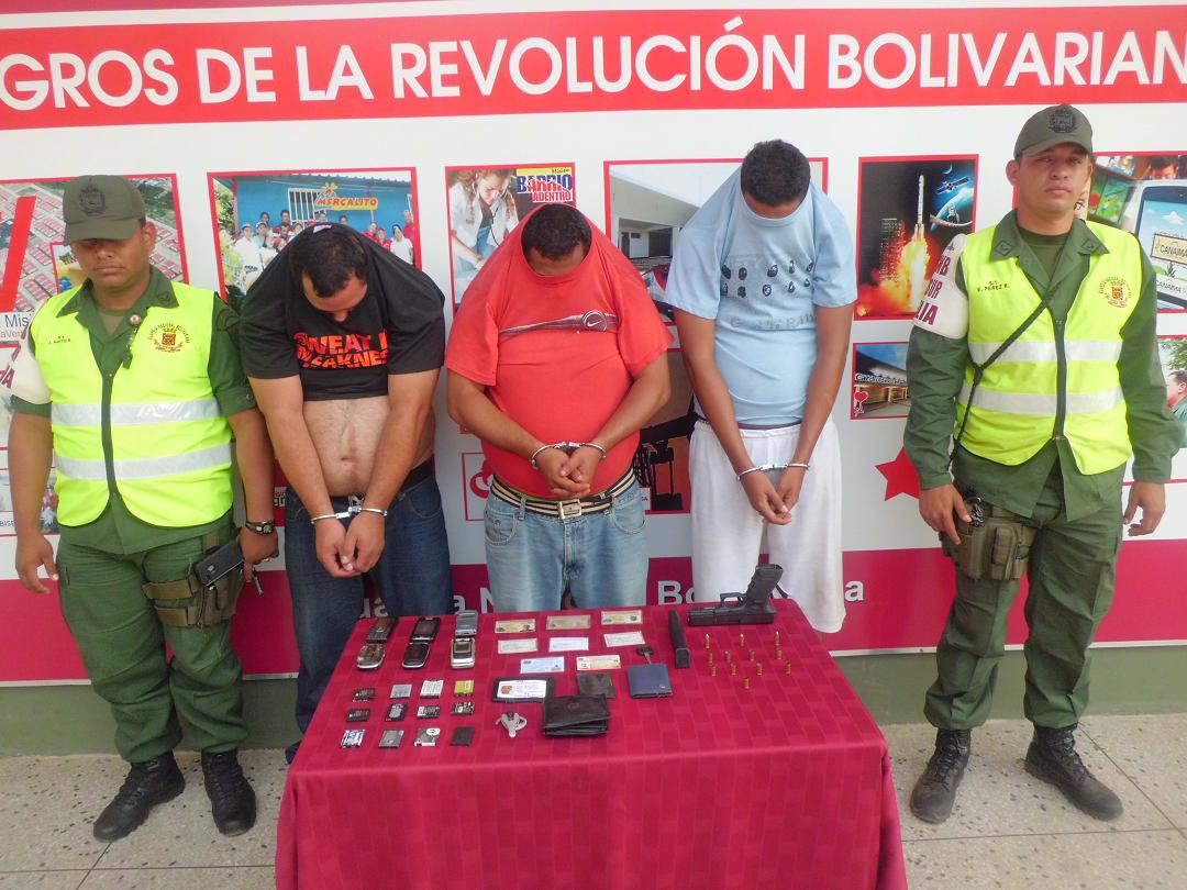 En un procedimiento efectuado en el sector Cujicito de la parroquia Idelfonso Vásquez, la Guardia Nacional Bolivariana logró la detención preventiva de tres sujetos quienes se encontraban realizando disparos al Centro de Diagnóstico Integral Los Mangos, ubicado en la zona.