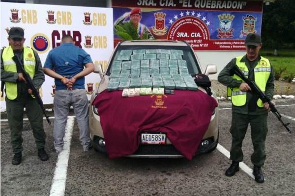 Funcionarios de la Guardia Nacional Bolivariana en el kilómetro 24 vía a Perijá incautaron de 19 envoltorios tipo panelas de presunta marihuana, genéticamente modificada , con un peso bruto aproximado de 10,080 kilos.