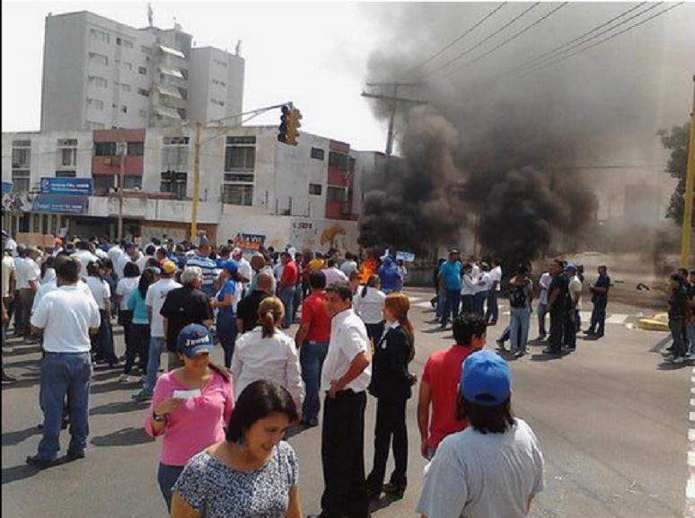 Funcionarios del Cuerpo de Policia Bolivariana del Estado Zulia, CPBEZ, se han desplegado en el área para controlar la acción de unos 50 encapuchados, aproximadamente, quienes mantienen tomadas también las adyacencias de la Clínica Izot y quienes además tratan de cerrar la vía con quema de cauchos.