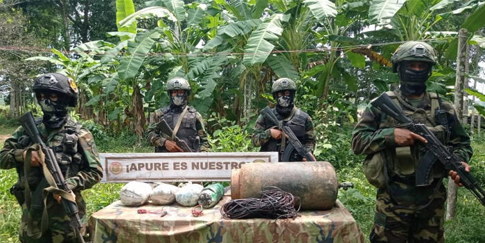 El funcionario detalló, en su cuenta de Twitter, que el campamento fue localizado por funcionarios de la FANB en un bosque de galerías «en lo profundo de la maleza» del sector Arenales, ubicado en el municipio Páez, en Apure.