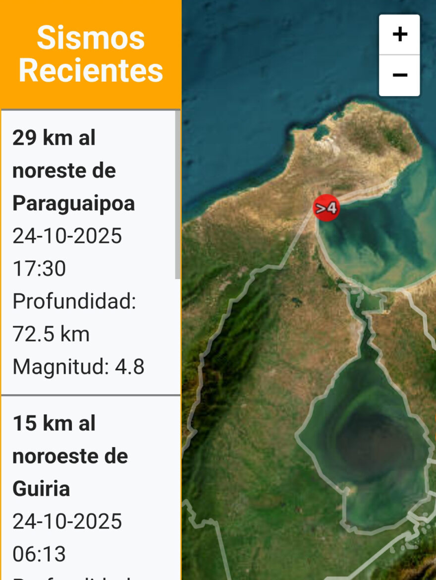 La Fundación Venezolana de Investigaciones Sismológicas (Funvisis), organismo oficial encargado del registro de eventos sísmicos en el país, reportó un sismo de magnitud 4.9 en horas de la tarde de hoy, viernes 24 de octubre de 2025, a las 17:30 (5:30 p.m.) hora local (GMT -4).