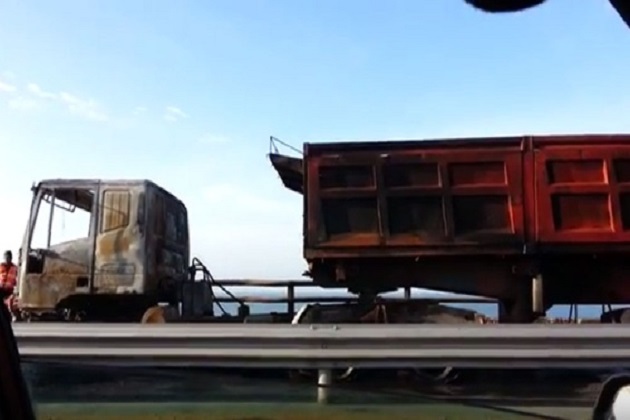 El incendio de una gandola provocó caos vehicular durante la madrugada de este lunes en el Puente General Rafael Urdaneta.