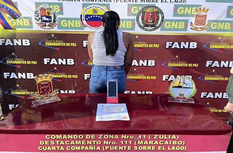 Tras requisas registradas en el Punto de Atención al Ciudadano en las inmediaciones del Puente Sobre El Lago, efectivos de la GNB adscritos al Destacamento 111 detuvieron a una mujer por llevar en su vagina un envoltorio de marihuana de 102 gramos.