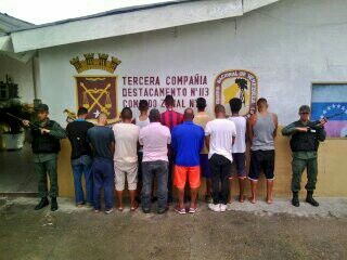 La banda “Los Afros» integrada por Julio González (31), Aldrín Delgado (44), Ganbely Rojas (34), Jean Blanco (26), Jesús Rojas (42), Daniel Estrada (27), Joel Rojas (18), Juan Hernández (21) Geovanny Sánchez (33), Gabriel Sánchez (37) y un menor de edad. Los mismos fueron capturados en flagrancia cuando intentaban saquear un camión de frutas que circulaba por la Lara-Zulia” comentaron las autoridades sobre el procedimiento.