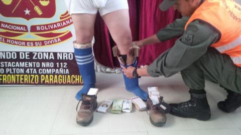 El día de ayer en horas de la noche la GNB perteneciente al Destacamento 112, con jurisdicción en la frontera de la Guajira, lograron detener preventivamente a un hombre que al ser revisado corporalmente se le halló, entre su ropa interior, 300.000 bolívares en efectivo.