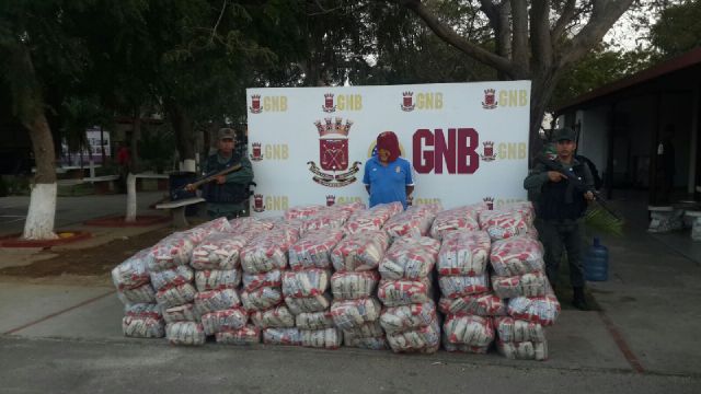 Como resultado de los estrictos procedimientos enmarcados en la lucha contra la guerra económica, efectivos militares de la Guardia Nacional Bolivariana adscritos al Comando de Zona 11 destacados en el Punto de Control Fijo Integral Puente sobre el Lago, lograron importantes retenciones de alimentos en tan solo 12 horas, donde se reportan más 100 toneladas de productos recuperados.