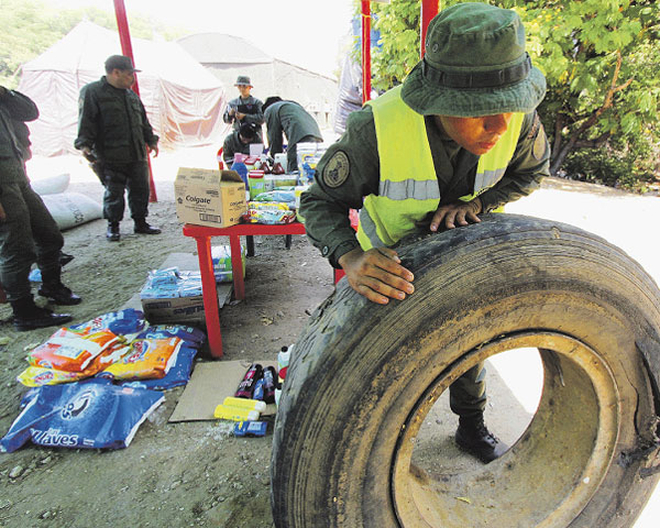 “Esconden alimentos en ‘cauchos de repuesto’ que en realidad son previamente abiertos y dentro les esconden rubros de primera necesidad. Hace días se detectó que dentro de un supuesto caucho de repuesto para un camión 750 metieron tres bultos de arroz. Los camioneros llevan hasta seis cauchos en la parte de atrás de sus vehículos para despistar”, dijeron voceros militares.