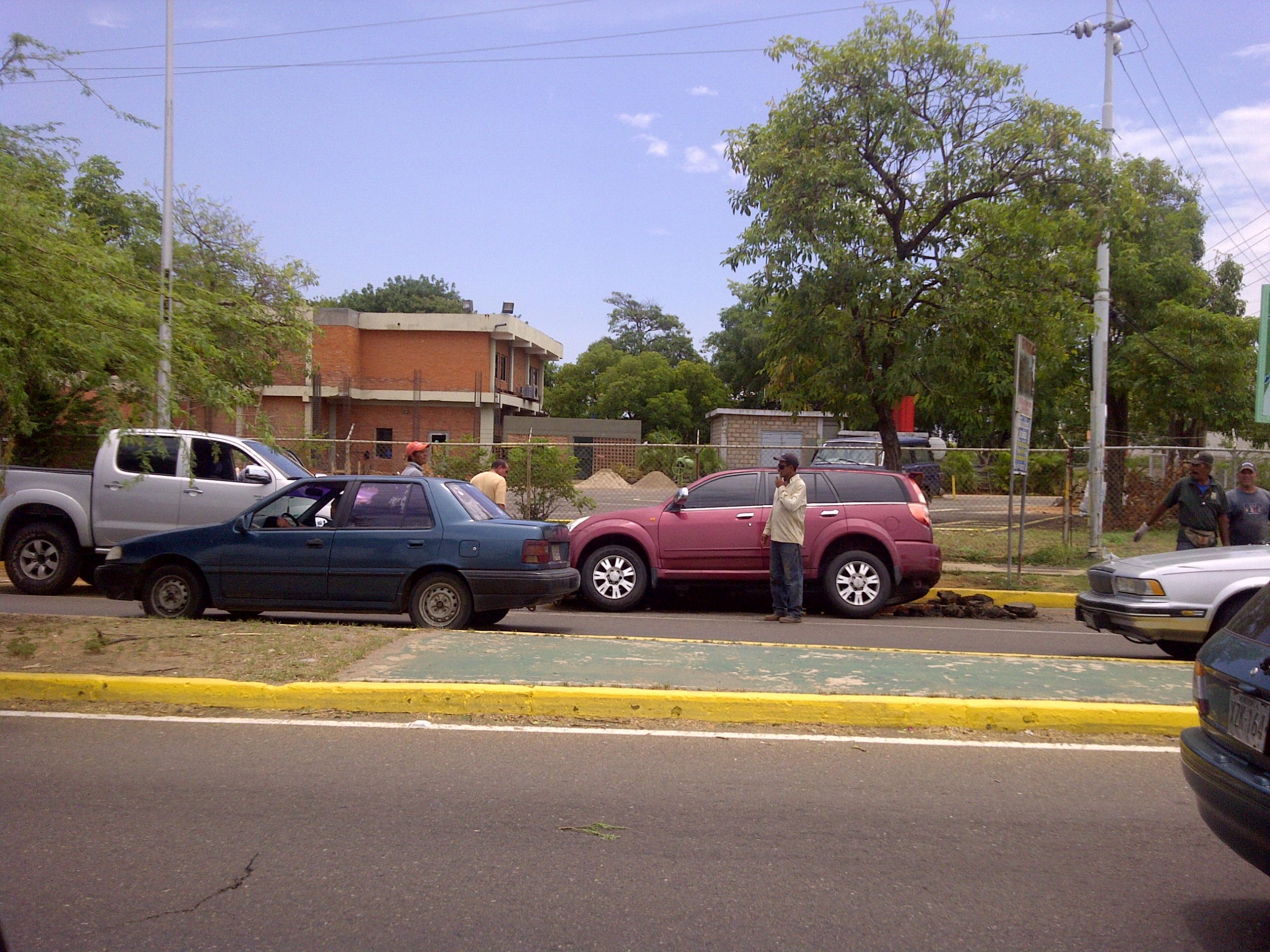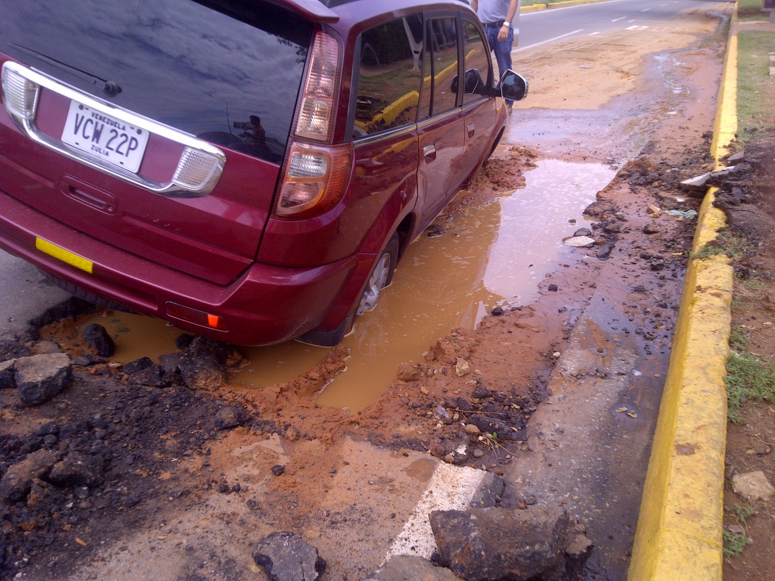 Exactamente frente al colegio Los Robles, en la avenida Fuerzas Armadas, sentido sur – norte se encuentra el automotor que fue «tragado» por un hueco hecho por Hidrolago, así expresado por vecinos de la zona.