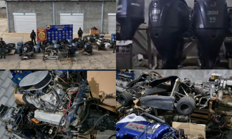 Indicó que la incautación total se cifró en “8 motores fuera de borda modelo 300, 1 motor fuera de borda modelo 200, 2 motores fuera de borda modelo 100, 8 motores para semisumergibles y un Ford Mustang blanco”.