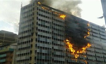 Un incendio se produjo en el edificio Wrangler, ubicado en la esquina San Miguel entre las avenidas Panteón y Fuerzas Armadas, en Caracas. El acceso hacia la avenida Fuerzas Armadas desde la Panteón fue cerrado por el suceso.