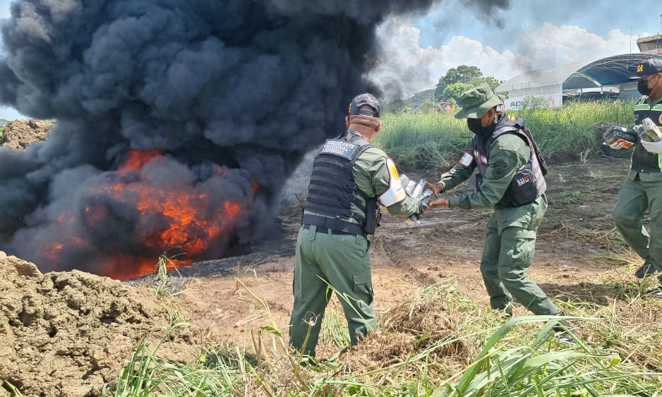 Funcionarios de la Guardia Nacional (GN) incineraron un total de 2.296 panelas de cocaína, un total aproximado de 2.610 kilogramos de droga, incautada la pasada semana en el municipio Catatumbo en el Estado Zulia…