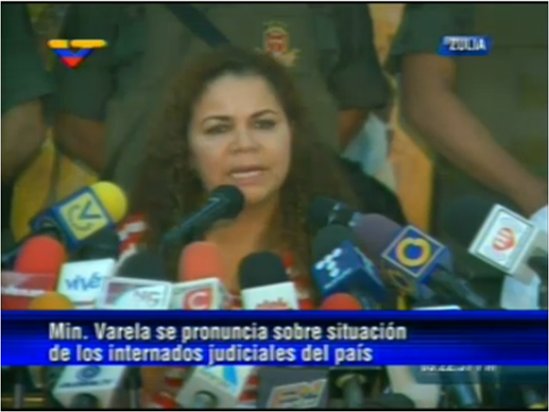 La ministra de Asuntos Penitenciarios, Iris Varela, llegó este jueves a la ciudad de Maracaibo, desde donde rindió declaraciones sobre la situación que se vive en el recinto penitenciario desde el pasado lunes, lugar donde se han generado enfrentamiento por el control del penal, dejando como resultado 16 presos muertos.