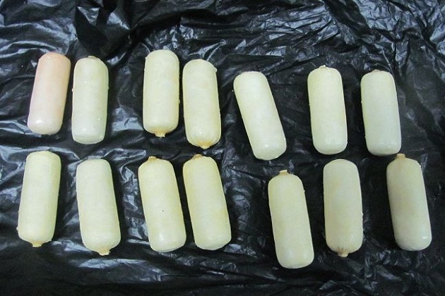 Los nueve dediles extraídos del aparato digestivo de Exison Gerardo Fernández Palmera, tienen un peso total de 372 gramos, sin contar con la cantidad que se virtió en su sistema estomacal que le originó la severa intoxicación.