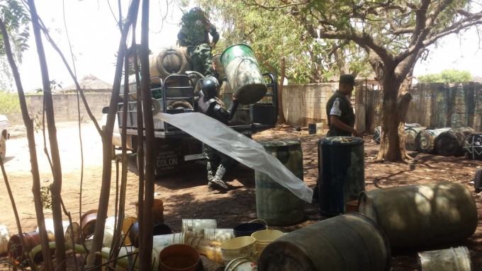 La Comisión conjunta DVC11-EPGMA efectuó la incautación e inutilización treinta y siete (37) envases plásticos (Pipas) llenos con capacidad de 220 litros cada una y la cantidad de ocho mil ciento cuarenta (8.140) litros de combustible gasoil, en procedimiento efectuado entre los sectores el Taparito y El Arroyo, de la costa oriental del Lago del estado Zulia.