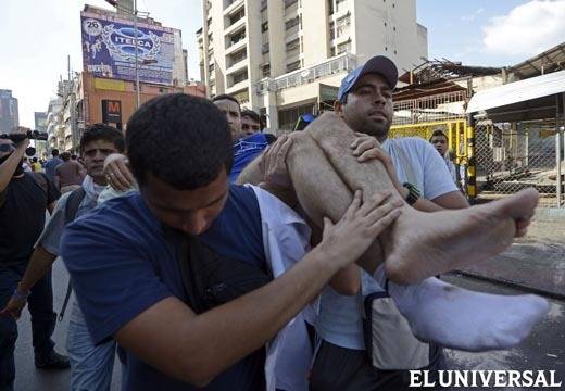 Un ex miembro de Policaracas resultó muerto de dos disparos, uno en la cabeza y otro en el pecho, en la esquina de Candilito, frente al Banco Caroní de La Candelaria, durante la reyerta que se suscitó entre miembros de colectivos armados y estudiantes que marchaban hasta la sede del Ministerio Público, en Parque Carabobo.