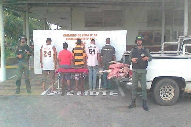 Manuel Rodríguez (34), Maira Rodríguez (38), Oswardis Zambrano (22), Adrian Rodríguez (27) y Duber García quedaron tras las rejas tras ser capturados en flagrancia descuartizando cuatro reses en una carnicería.