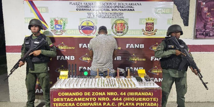Al hombre de 48 años de edad se le incautaron cinco armas de fuego tipo revólver, 299 municiones y tres cargadores, según información posteada en X por el comandante Estratégico Operacional GJ Domingo Hernández Lárez.