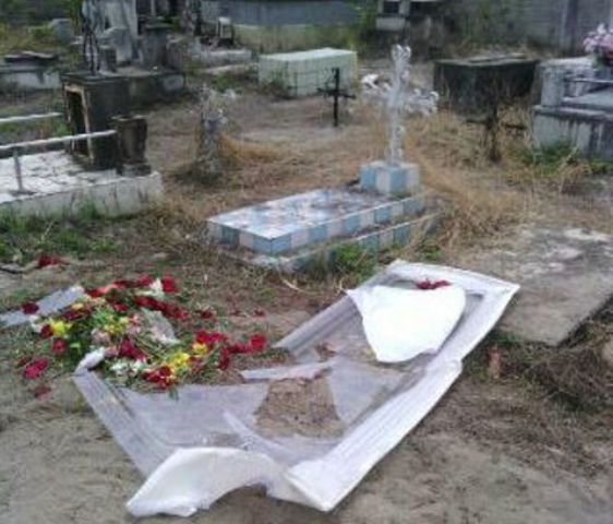 Diario República conoció que profanaron la tumba para despojar al cadáver de una cadena de fantasía, además de la plancha o prótesis dental con oro incrustado, sólo falto que se llevaran el sarcófago elaborado con madera fina.