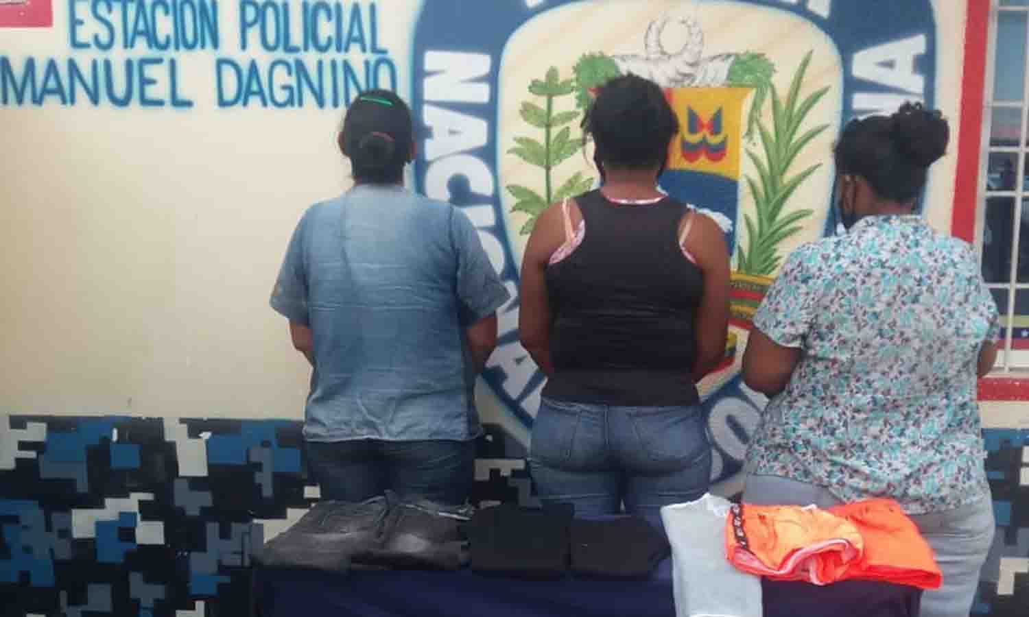 Funcionarios de la Policía Nacional (PN), adscritos a la parroquia Manuel Dagnino, llegaron al lugar viendo a las mujeres ocultando varias prendas de vestir. En ese momento procedieron a detenerlas. Las tres mujeres fueron puestas a orden del Ministerio Público de guardia.