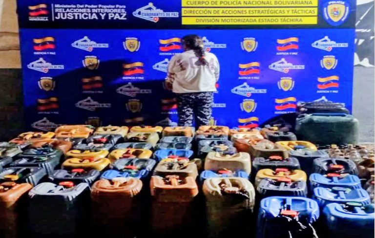 Funcionarios de la Policía Nacional Bolivariana (PNB) en el estado Táchira lograron la aprehensión de una ciudadana y la incautación de un significativo cargamento de combustible, como parte de los operativos de patrullaje preventivo y la lucha contra el contrabando en la frontera con Colombia.