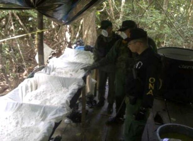 Durante el procedimiento, los funcionarios detectaron en una zona boscosa de esa región, la presencia de seis campamentos dedicados a la elaboración de drogas y lograron incautar la cantidad de dos toneladas de pasta de cocaína, 12 mil 500 toneladas de acetona, 10 mil litros de gasolina, cinco toneladas de urea, dos mil litros de amoníaco, tres plantas eléctricas y demás evidencias de interés criminalístico.