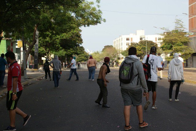 Esta acción solo logró caldear los ánimos de los guarimberos, quienes se fueron encima del grupo antimotín del Cuerpo de la Policía Bolivariana del Estado Zulia (Cpbez). Frente a la lluvia de piedras y botellas, los funcionarios pudieron protegerse con sus escudos.