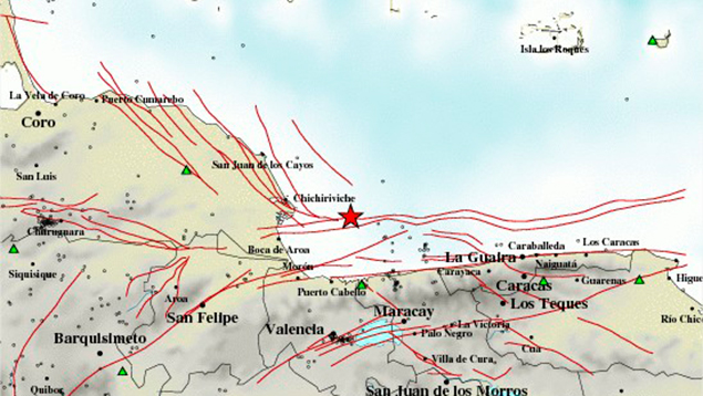 El epicentro del movimiento telúrico, que se produjo a las 09.18 hora local (13.48 GMT), se situó a 40 kilómetros al noreste de Morón, estado Carabobo, con una profundidad de 5.0 kilómetros, detalló Funvisis.