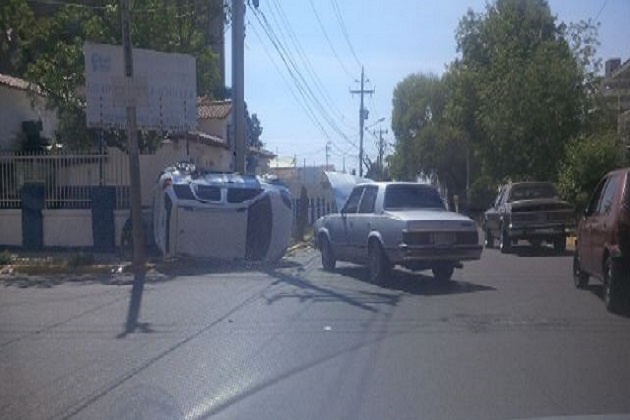 El accidente provocó que una camioneta quedara volteada en el pavimento, tras impactar fuertemente con un Malibu.
